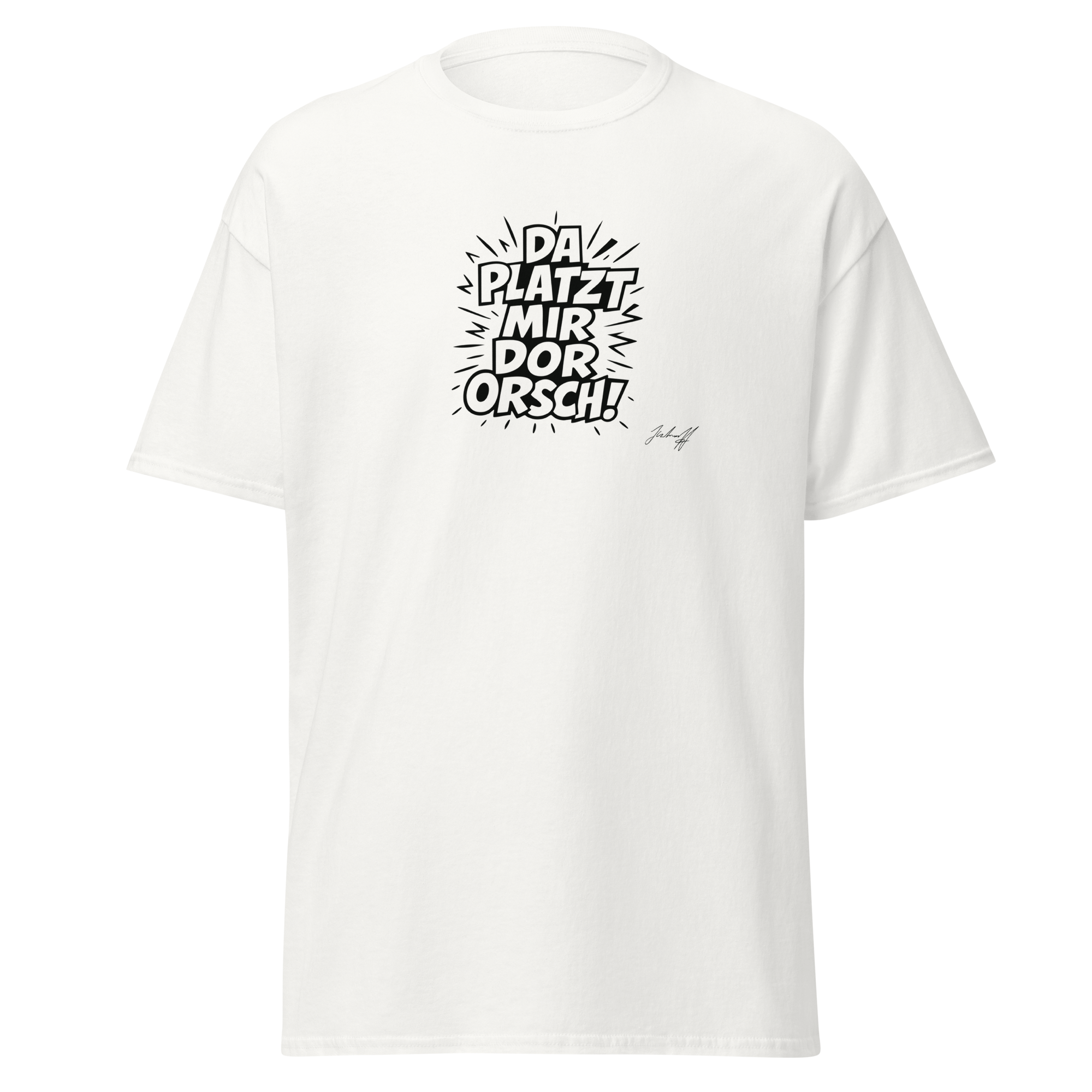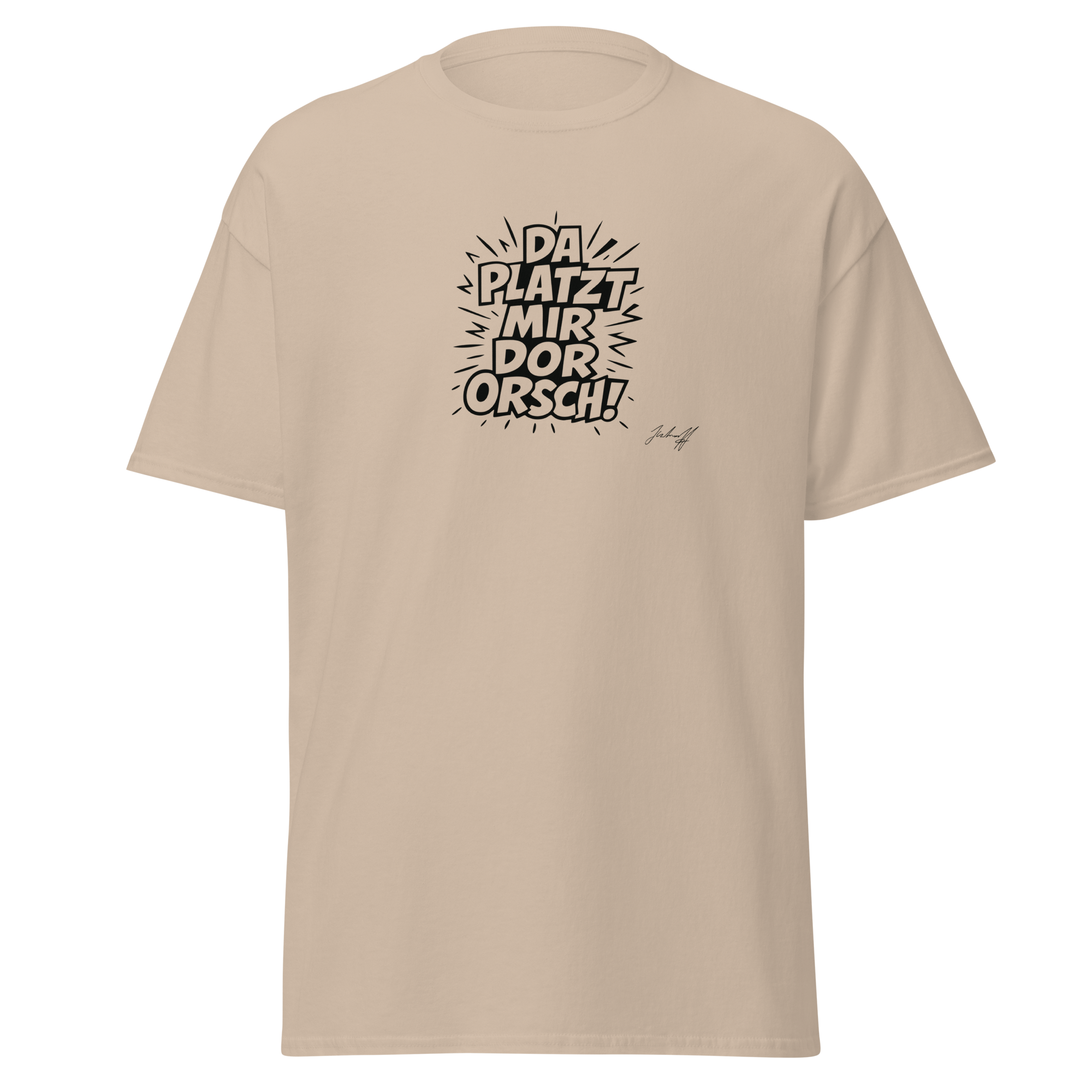 Wer es nicht so bunt mag, hier ist die schlichte »Da platzt mir vor Freude dor Orsch« Variante.